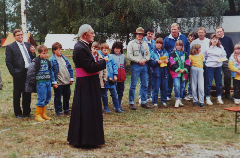 Gäste: der würzburger Weihbischof A. Kempf, Bezirkskurat E. Englert, DPSG-Stämme aus Mellrichstadt, Gerolzhofen, Euerbach, Sendelbach, Ostheim v.d. Rhön, Bad Neustadt, Münnerstadt und us-boyscouts aus Wildflecken. Dabei Bürgermeister R. Dietz, DK D. Seidel
