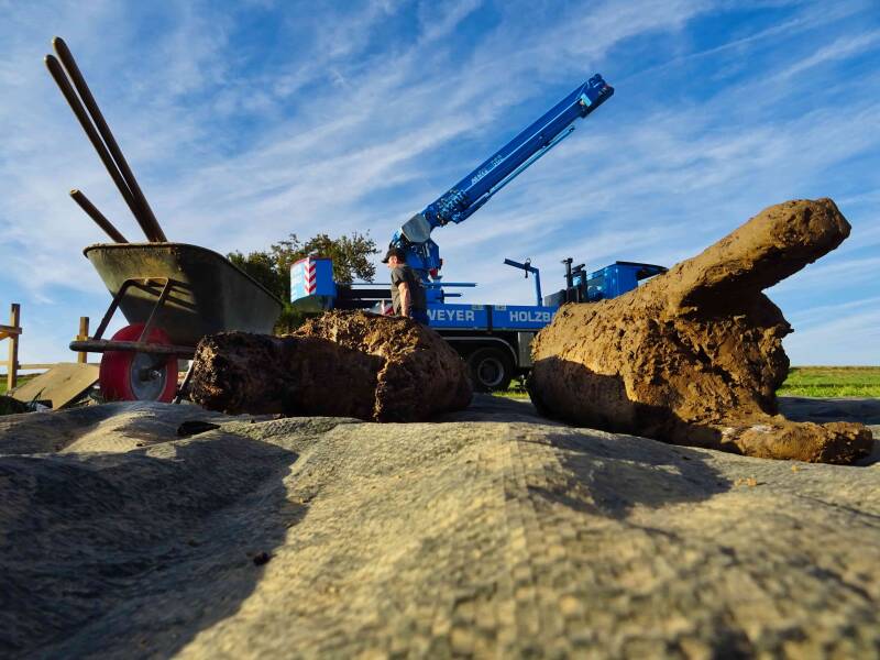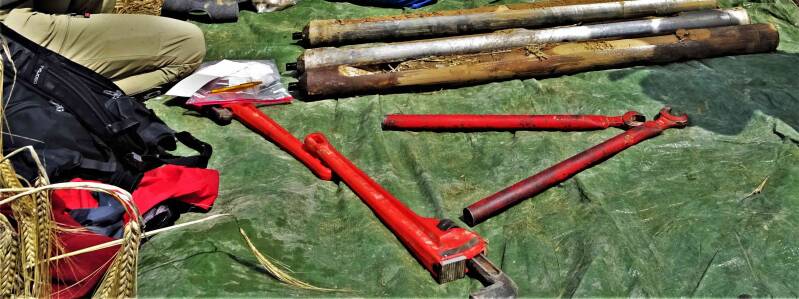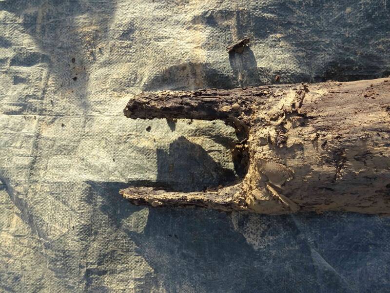 pfosten der BrunnenWinde werden aus dem Brunnen geborgen