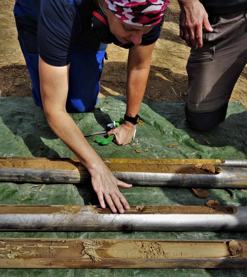 Geologen entnehmen Bohrkerne