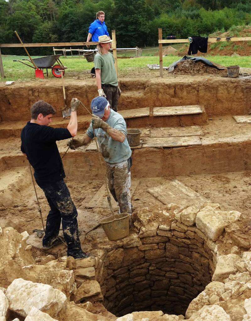 Scherbensuche im Abraum des Brunnens