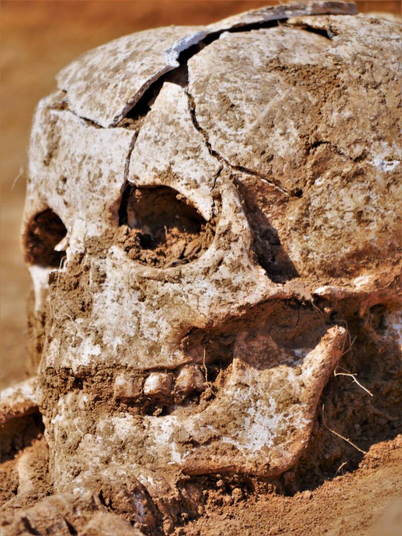 kommt nach wochenlanger grabung unter einem früheren Brunnenhaus ans Licht