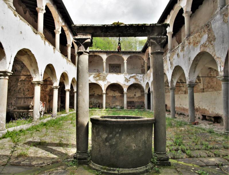 Il chiostro con affreschi raffiguranti la vita di San Francesco
